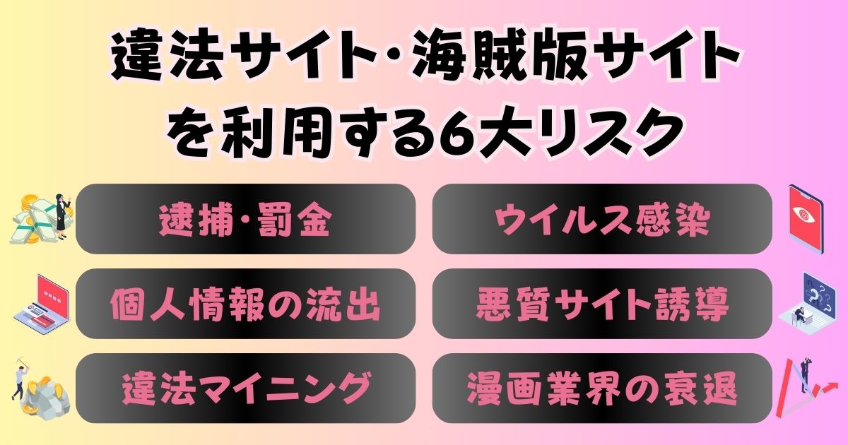 違法サイトでは常にウイルス感染や個人情報流出のリスクがつきまとうため、結果的に大きな損失を被る可能性も。
